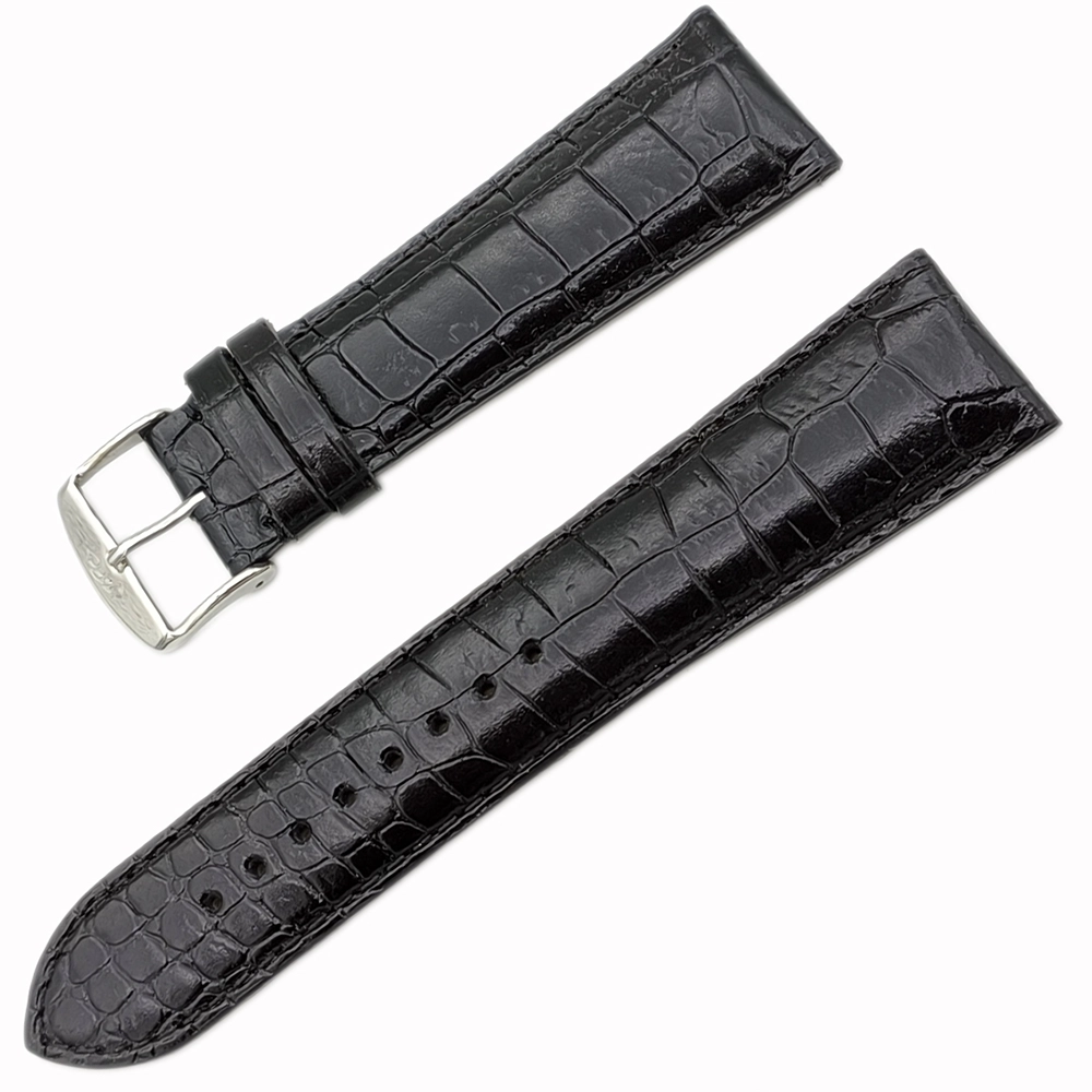 ZRC Croco Grain Siyah Deri Saat Kordonu – 22mm – Klasik Krokodil Desen